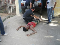 ensanguentada quando foi socorrida pelas pessoas que passavam no local.Um popular lembra que viu quando um desconhecido -- logo após os disparos -- saiu correndo e fugiu numa moto